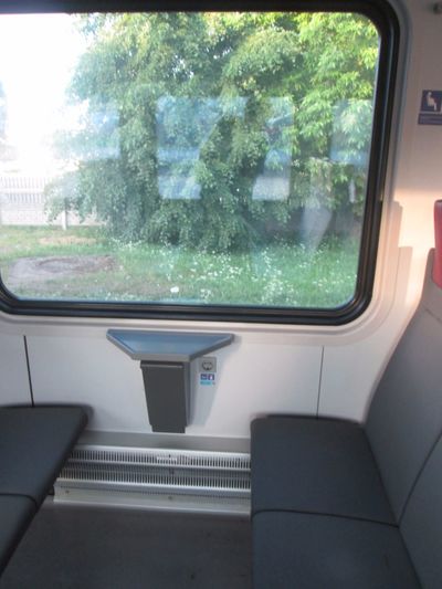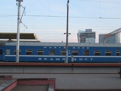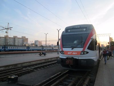 В небольшой старинный город Заславль я съездил вечером в конце мая на поезде городских линий. Это такое белорусское транспортное новшество, стоит на наши деньги рублей 30 , внутри пусто, чисто и цивильно. Делают их где-то с 2013-14 года в городе Дзержинск Минской области по швейцарской технологии.