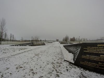 Затем мы посетили мемориал на месте концлагеря "Тростенец" на окраине Минска. Этот лагерь гитлеровские оккупанты организовали в 1942 г. В 2015 г здесь установлен довольно грандиозный мемориал в память о более чем 200000 замученных здесь узниках (советских военнопленных, мирных жителей Минска и окрестностей, а также евреев, привозимых сюда не только со всей территории Белоруссии, но и из Германии, Австрии, Польши, Чехословакии).