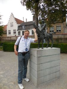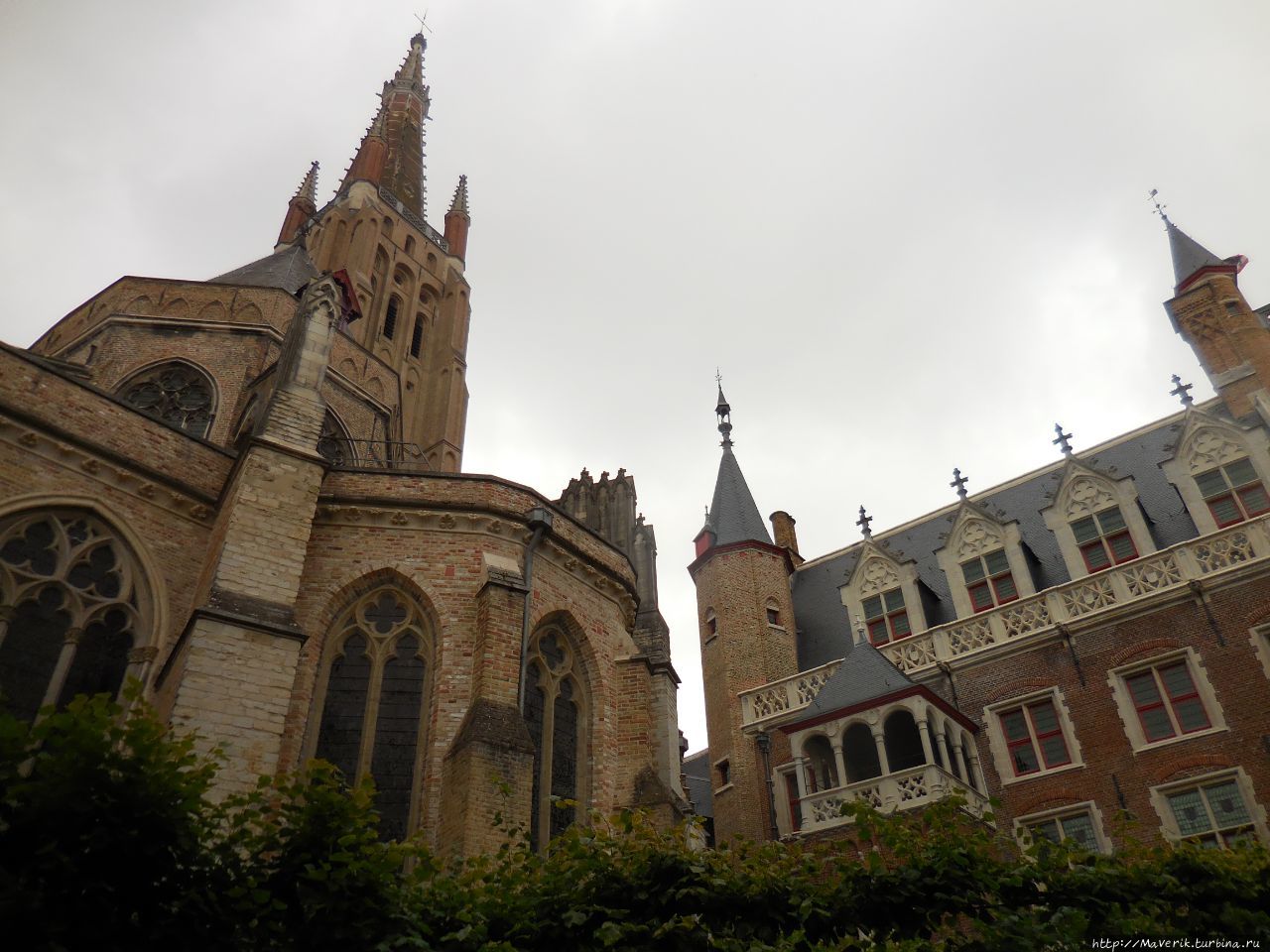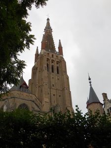 А вот и шпиль, который всё время выглядывал из-за крыш маленьких кирпичных домиков. Перед нашим взором — колокольня церкви Богоматери. Её высота составляет 122 метра. Это второе по высоте кирпичное здание в мире (первое — у церкви Святого Мартина в баварском Ландсхуте). Фасад собора Богоматери (Onze-Lieve-Vrouwekerk), построенного в XII-XV веках, отмечен строгостью ранней готики. В церкви находятся крипты Марии Бургундской и Карла Смелого, а ещё — купленная за огромные деньги во времена Средневековья, единственное произведение Микеланджело, покинувшее Италию при жизни великого художника — мраморная статуя "Дева Мария с младенцем".