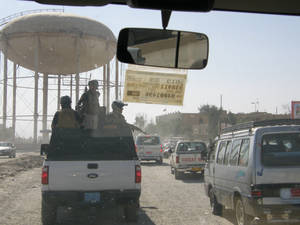 Мост через Евфрат в Насирии весь заставлен автоматчиками. И через каждые 50 метров в городе стоит солдат. Возле мэрии идёт митинг. Около сотни человек что-то требуют, вот власти и решили подстраховаться.