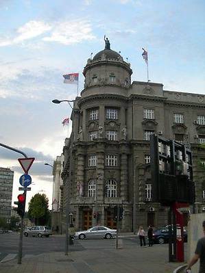 В качестве «Памятников» натовских бомбежек сохранили не восстановленными здания Министерства обороны и на противоположной стороне здание-«близнеца». Символично, подумалось нам… Да и белое здание американского посольства выглядит весь странно. Окна замурованы до последнего этаже. Улица перекрыта для транспорта, на заборе «колючка», усиленная охрана. Сербы все помнят. Но живут в настоящем.