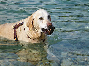 По периметру озера масса мест для организованного и полудикого купания. Нам хотелось чистого бесплатного пляжа и желательно бесплатной стоянки в тени деревьев. Было нетрудно найти такое местечко, где мы переоделись прямо в машине и , побросав шмотки и Бабулю на берегу бросили свои тушки в кристально-чистую воду.