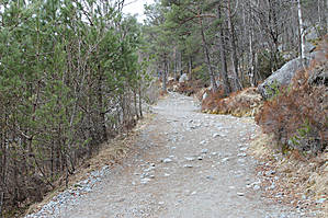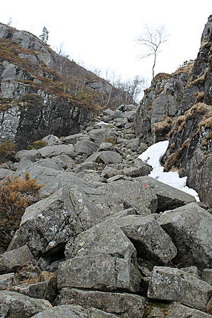 Дальше подъем переходит в плавный спуск. Здесь очень много булыжников из которых строят пирамидки. Здесь их называют троллями. Построил пирамидку — дал жизнь троллю и принес себе удачу. Мы не преминули воспользоваться советом и доложили пару камешков в пирамиду. Это занятие немного отвлекло от цели путешествия и приблизило цель.
