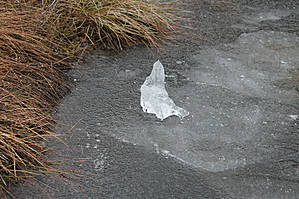В это время спуск привел к болотистой местности, через которую перекинут деревянный настил. Практически зима дает возможность полюбоваться застывшими льдинками, которые мы снимаем в разных ракурсах. Зрелище еще то.