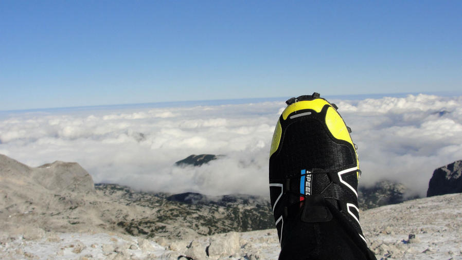 То и дело я обгонял народ, идущий туда же, куда и я. Здесь относительно простая тропа, чередующаяся с железными тросами. Если придерживаться общего темпа — то можно уснуть. Местный турист возраста выше среднего, одетый в классические горные ботинки, имеет за спиной не только прожитые года, но и весьма большой рюкзак и много, на мой взгляд, не нужной одежды. Смеюсь над собой, ведь в прошлом году я таскал на себе 25кг по Альпам. На сей раз, сугубо горно-беговая экипировка позволяла двигаться очень быстро, и минут за 40 добраться до вершины, включая остановки на "пофоткать".