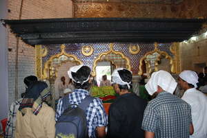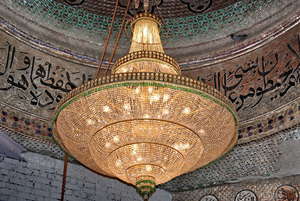 Могила святого Хаджи покрыта красно-зеленой парчой, и обрамлена серебром. Главный зал украшен мраморными столбами с цветным стеклом.