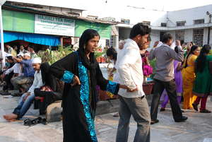 А эту женщину мне захотелось "освободить" из рук супруга. Он ее куда-то тащил... Но решила не вмешиваться в семейные отношения)
