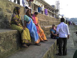 От мечети вниз, к заливу идет несколько рядов ступеней, на которых тоже сидят с удовольствием...