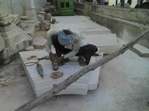 Во время моего там пребывания, застала реставрацию некоторых частей мечети. Резчик по мрамору почти вручную что-то мастерил.