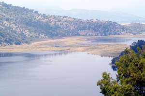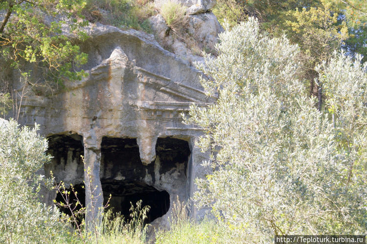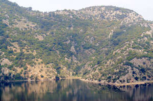 Во второй день нашего путешествия мы побывали в окрестностях Даламана. Даламан (Dalaman) называют краем озер, но, известен скорее, как аэропорт. Мы проехали мимо самолетов и попали на озеро Коджагёль. В центре озера даже есть остров. Расположеное в котловине, окруженное крутыми скалами и горными склонами с оливковыми рощами, оно кажется неприступным. Написано, что глубина озера достигает 40 метров, но я не проверял. Мы нашли дорожку к берегу озера через оливковый сад. Такого количества оливковых деревьев я еще не видел. Деревья старые, стволы не обхватишь.