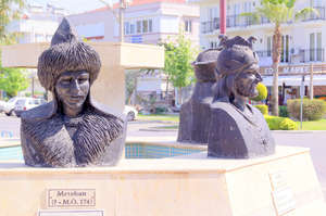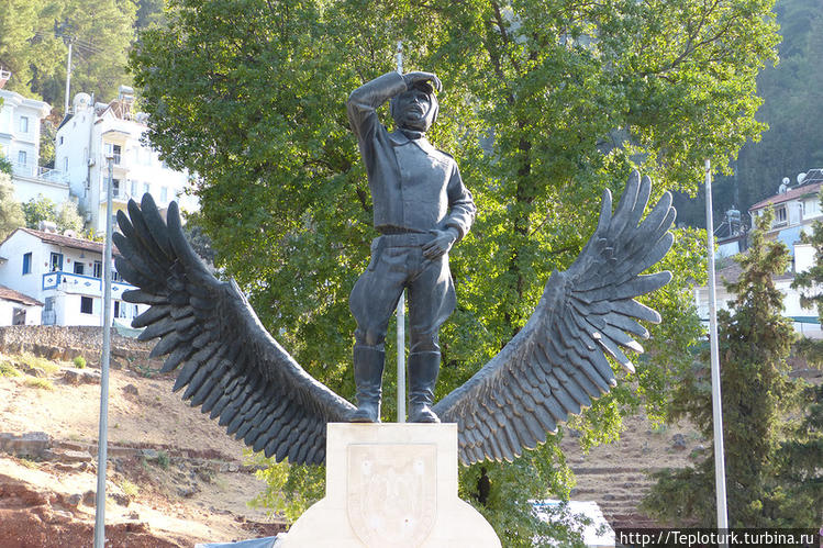 Фетхи-бей, стоящий на ликийском саркофаге, из которого растут крылья, родился в этом городе и участвовал в патриотическом демонстрационном перелёте Стамбул-Каир звеном из двух самолётов. Его самолёт разбился под Дамаском, пилот погиб, а второй самолёт долетел до Яффы и тоже разбился.