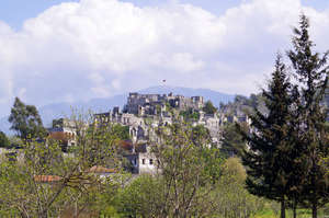 Далее мы углубились в горы. Как нам сообщила наш гид Алена, там находится «секретная» деревня. Секретная — потому что найти ее не просто. Но побывать там стоит. Красивейшее место – река, перегороженная плотиной, образовала водохранилище с форелевым хозяйством. Уютные виллы и бунгало построены на склонах окружающих гор с сосновым лесом. Здесь же ресторан с гнездами для посетителей. Бассейн и другие объекты цивилизации тоже в наличии.