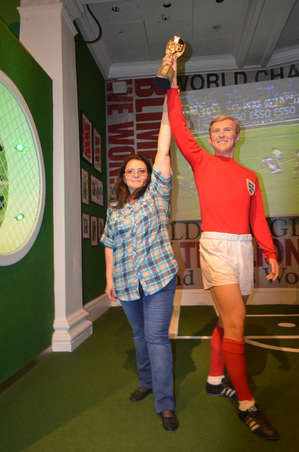 Во вторник утром встали, собрали вещи т.к. в три часа нас планировали перевезти на квартиру, где живут русские семьи. Позавтракали в отеле и отправились в музей мадам Тюссо, Ксюше уже не терпелось посмотреть что нибудь интересное. мы пришли в музей, но оказалось, что там сломался лифт и нам сказали прийти через час, мы пошли увидели магазинчики с сувенирами, решили зайти посмотреть и заодно присмотреть призы для конкурса "Я люблю лето" в нашем Клубе юных волонтеров "Искорка добра" . Чего там только нет, тоже интересно, кое что мы там прикупили и вернулись обратно в музей. Нас там встретили, Ксюша в музей пошла бесплатно, а мой билет стоил 30 фунтов. В музее несколько залов, для тех кто не знает, музей мадам Тюссо- это музей восковых фигур. Фигуры выглядят как живые. там несколько залов, первый зал- это звезды кино, потом мы попали к звездам эстрады, политикам и руководителям стран, известным спортсменам, а так же там представлены, в не большом количестве фигуры ученых, художников.