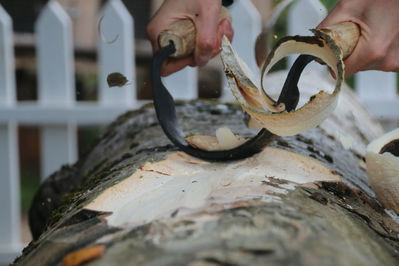 Что точно можно сказать, так это то, что Дед Вытегор до неведомых глубин своей души любит этот озерный край и рыбную ловлю на озере, поэтому одной из первых вещей, которым научил нас Денис в Вытегории, было искусство изготовления традиционной лодки вепсов — долбленки.