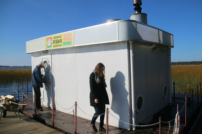 Позднее прибытие не помешало нам воспользоваться одной из местных бань, которых в "Вытегории" для гостей предлагается сразу 3: финская, русская по-черному и совершенно уникальная плавбаня, в которой можно ночью отправиться в плавание по Тудозеру, при этом одновременно париться и прыгать ради охлаждения в воду...