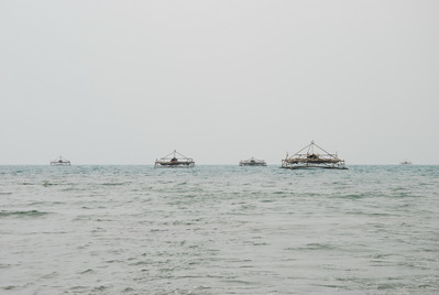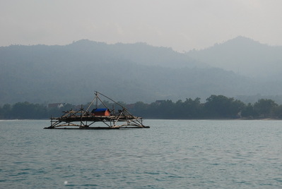Там -пересадка на моторную лодку и вот марш-бросок по волнам пролива.Проплываем интересные плавучие домики, скорей всего, для рыбной ловли. Хотя, как они передвигаются, я не знаю... Скорей всего, их буксируют...