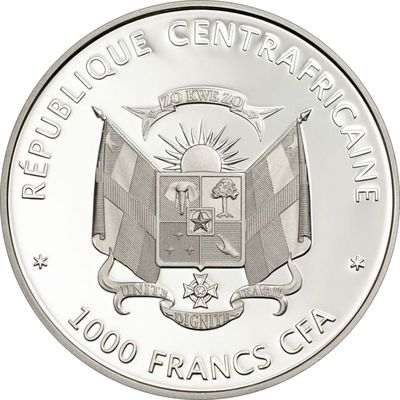 4).2014 год. Центральноафриканская Республика, 1000 франков. Золотистый лесничий.
