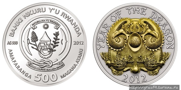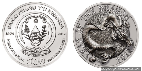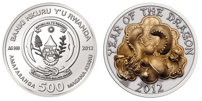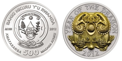 Удивительнейшие 3D-монеты эмитировала Руанда в 2012 -2016 годах, каждый год по серии из трёх монет номиналом 500 франков, тиражом — 1 888 экземпляров. Монеты посвящены животным из китайского зодиака.