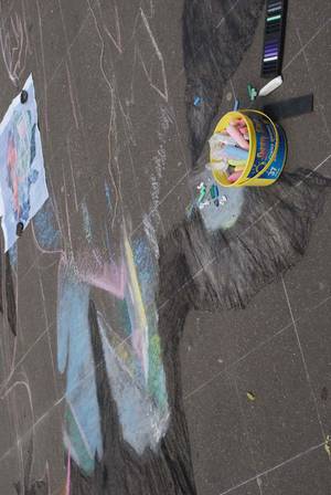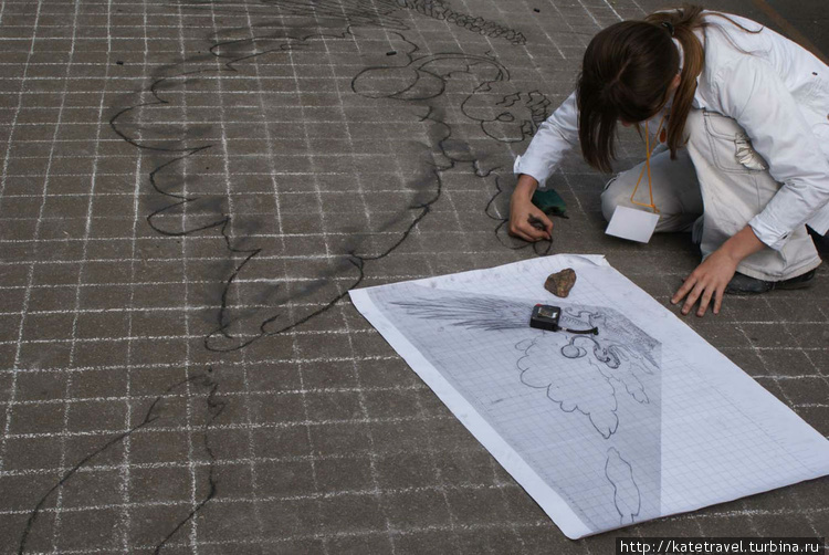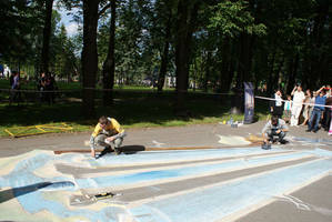 Как бы то ни было, рисунки остались на месте проведения фестиваля, в центральной аллее Приморского парка Победы, что на Крестовском проспекте, д. 21, около парка аттракционов "Диво-Остров". Но в Петербурге нынче дожди, так что, если хотите успеть посмотреть на это чудо, спешите! Для "затравки" представляю вашему вниманию несколько фотографий незавершенных шедевров.