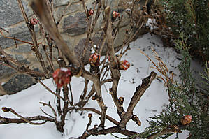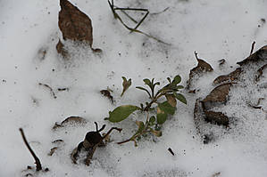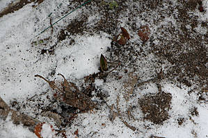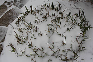 Но наступило 9 марта. Утром смотрю в окно — "побелело чисто поле", в смысле выпал снег и на газон, и на дорожки, и на свеженькие побеги тюльпанов.