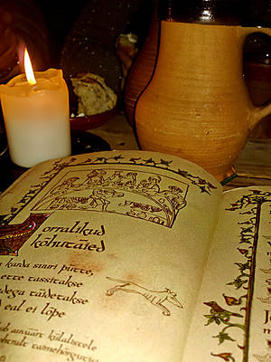 О выборе меню то же можно рассказывать много и долго. Это кабанятина, лосятина, медвежатина, зайчатина и дичь. Выдержки из меню: «Наивкуснейшая зайчатина из охотничьей кампании барона von Wehren с соусом из лесных грибов и благородными пряностями; филе лося, во славу и процветание главы рыцарской гильдии; филе из дичи в случае удачной охоты, растительные яства, излюбленные почтенным Ревельским бургомистром ; медвежатина в честь Его Высочества Короля Датского Вальдемара II-го, правителя и покровителя Ревеля; томленый с самыми дорогими пряностями и вином красным и ягодами лесными приправленная ко всему спельд – пшеница с шафраном…»