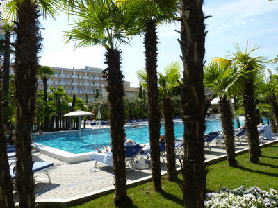 Мы же расположились в уютном мальньком отельчике Rosa недалеко от центрального проминада. Выбрали отель по лучшему ценовому предложению и не пожалели, мальнький, тихий, дешевый, без бассейна. Удобное расположение рядом с остановкой автобуса в любое направление.