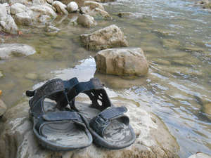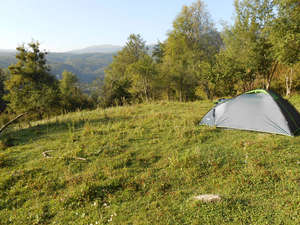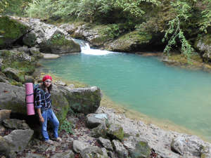В Гуамке мы выбрали тоже красивое место для ночевки рядом с рекой. Минус был в том, что людей здесь больше, стоит большой комфортабельный отель и поэтому не так спокойно как в Мезмае. Зато с автобусами здесь значительно лучше.Уже на следующий день нам удалось уехать в маршрутке на Абшеронск, единственное что людей было много и мы со своими рюкзаками еле влезли.