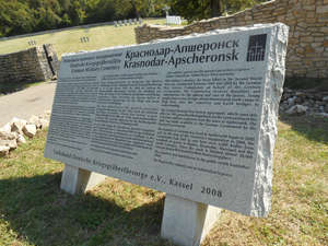 где-то в Апширонском районе оказалось находится большое немецкое кладбище, куда свозили немецких солдат еще со времен войны. В 1992 году между правительствами РФ и ФРГ было принято соглашение об уходе за немецкими военными могилами. В соответствии с ним немецкая сторона за счет собственных средств обеспечивает сохранность российских военных захоронений и уход за ними в Германии, где находится 3310 воинских захоронений 740 тысяч советских граждан. А на российской территории создает компактные захоронения погибших на войне немцев. С 1992 года в России построено и восстановлено 20 немецких солдатских кладбищ. На новом кладбище в Апшеронском районе постепенно будут перезахоронены около 45 тысяч немецких солдат.