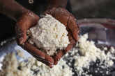 Только это не снег, конечно. Я попробовал кусочек, подумал сыр, похоже на вкус на несильно солёную брынзу. Но тоже нет, не сыр. Это фуфу (fufu), из кассавы. Причём от того фуфу, что в Нигерии или Гане, оно отличается. А то, что в Гане и Нигерии называется фуфу, в Либерии известно как дамбо (dumbo).