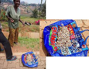 Пошел я погулять по Кигали. Иду, вижу, тетенька у дороги сидит, и что-то перед ней на пакете рассыпано. Думаю: “Небось что-то продает интересное, местное, дай-ка гляну.” Подошел, а это оказались маленькие грибочки, и она их не продает, а просто перебирает. Так как набрала их только что вдоль дороги. И они вроде бы съедобные. Хотя белые, очень мелкие и похожи на поганки. Но без юбочек. Так что, видимо, действительно, не ядовитые. В общем, можно эти грибы считать руандийскими белыми опятами.