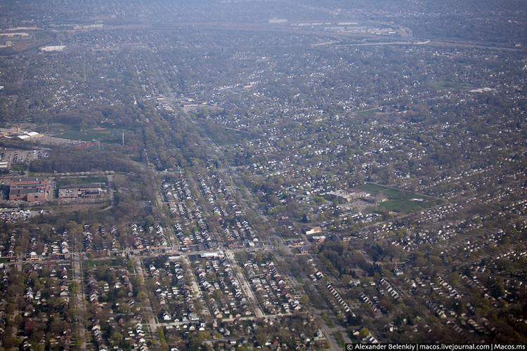 Детройта.Жилая часть Детройта оказалась почти вся одноэтажная.