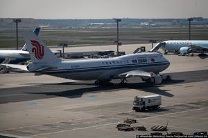 Вообще, Боинг 747 довольно популярная в мире штука, и сюда, в Франкфурт, прилетают "джамбо" десятков разных авиакомпанию. Посмотрите на этого "китайца": ничего не напоминает?