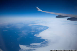 Зато мы долго летели над Канадой, и её пейзажи с высоты птичьего полёта очень напоминают Россию: снега, снега и никаких признаков жизни на сотни километров.