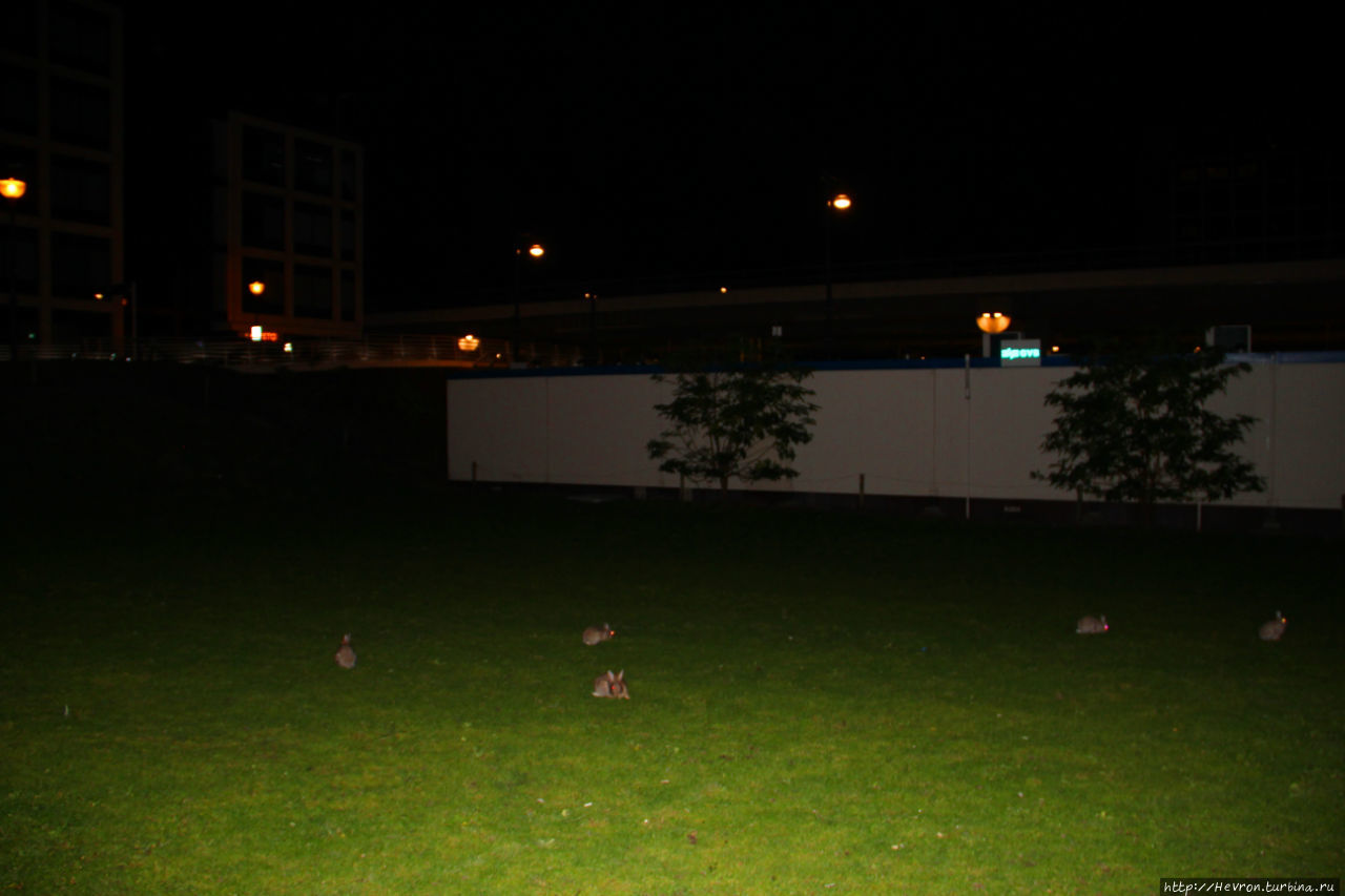 К отелю в Амстердаме мы подъехали уже достаточно поздно. Отель у нас был расположен в деловой зоне, поэтому вокруг было ни души, лишь офисные здания и слабый свет фонарей. И тут что-то прошмыгнуло мимо, похожее на кошку. Потом еще и еще, тогда стало понятно, что это совсем не кошка, а заяц. В темноте мало что можно было рассмотреть, поэтому днем мы отправились на поиски зайцев. Но их не нашли, только горки земли на ровных газонах, похожие на норки крота.