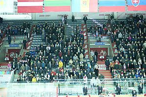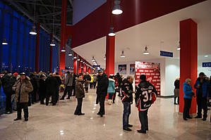Болельщики и фанаты начинают приходить на «Арену Омск» за час до начала матча,