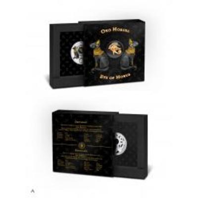 На реверсе в центре тоже красуется авантюрин, на который с помощью цифровой печати золотого цвета нанесен глаз Гора. Справа и слева от камня — две кошки, внизу — египетский крест анх.