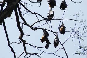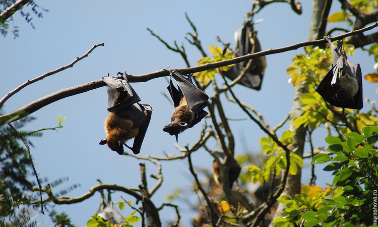 Крик, гам какой-то на ветвях. Летучие мыши! Или даже летучие собаки. Или лисицы. Тут их просто уйма. Летают как птеродактили, верещат, все ветви ими увешаны. Тоже забавные. Мне тут все больше нравится.