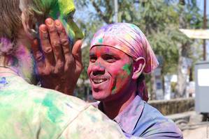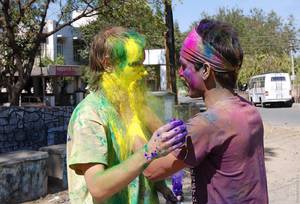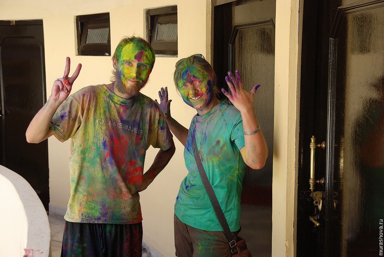Сегодня до 4 часов дня - фестиваль красок. С раннего утра под окнами гам, гудки и песни. Люди не просто пачкают друг друга во все цвета радуги, а веселятся от души. По диминой теории “как новый год встретишь, так и проведешь” получается очень складно - индусы каждый год начинают окруженные пестротой, безумием и весельем. Грязные и очень довольные :) Так и живут…