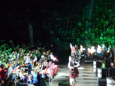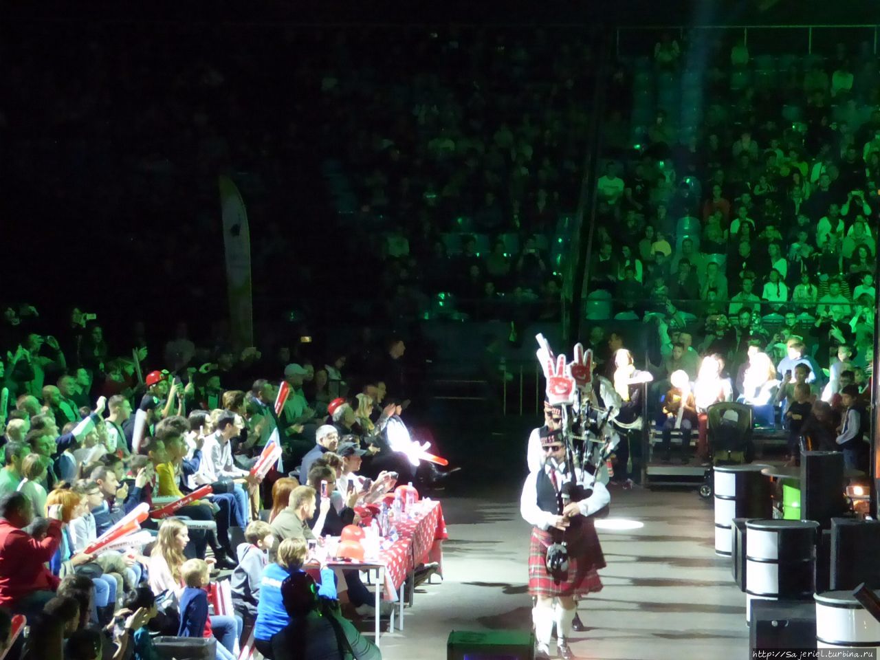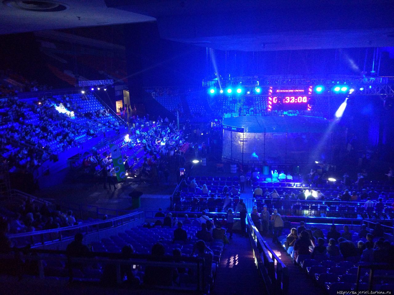 Шоу в "Олимпийском", которое стало ярким событием моего дня рождения 29 октября, называлось "Бронебот", — вероятно, от слов "бронированный" (арена окружена пуленепробиваемым стеклом, но сидящие рядом всё равно были в касках!)) и "робот". Состязались роботы из России, Англии и Нидерландов.