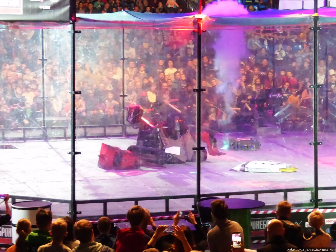 Роботы выезжают на арену по четыре штуки и крушат друг друга, стараясь при этом не попасть в ловушки. Каждым роботом управляет команда их конструкторов и операторов. Кстати, в "Олимпийском" были даже женские группы.