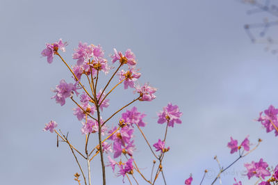 Это рододендроны. А мы их называем по-простому, хоть и неправильно, багульником. Он и в нашей песне -багульник. А из песни слов, как говорится, не выкинешь. Цветет он у нас чуть позже: в конце апреля и мае. Где-то на сопках багульник цветет...