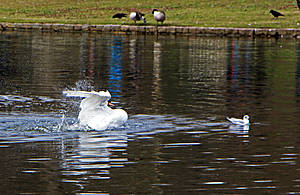 Вооружившись, я веслом, а Валик фотокамерой, мы пошли на них... цель достигнута — стая стала "на крыло"