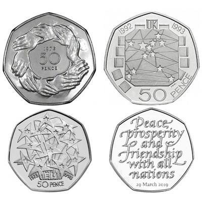 18 марта 2019 года Казначейство Ее Величества подтвердило, что выпуск и производство памятных монет, посвященные дню официального выхода Соединенного Королевства из Европейского союза, будут отложены.