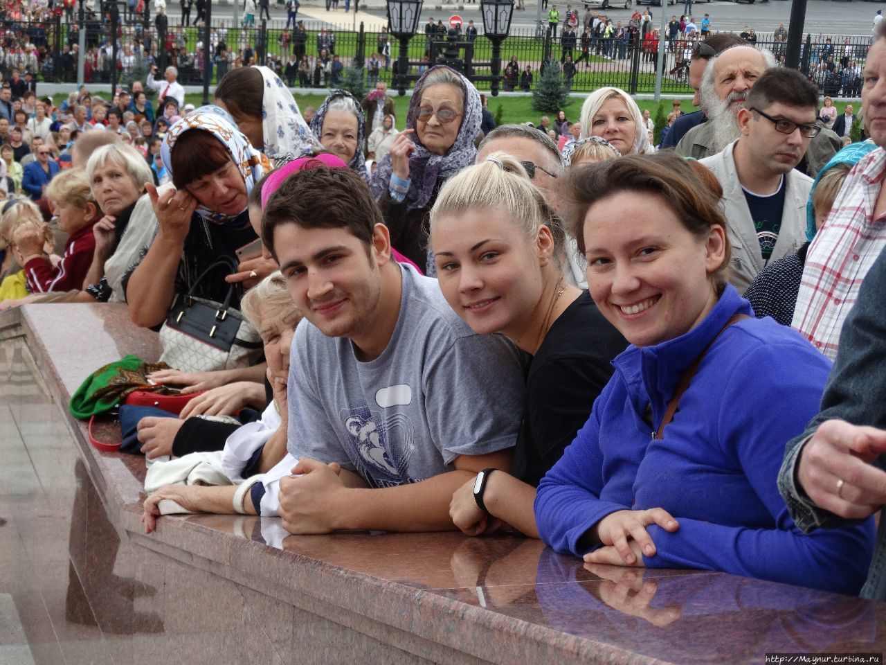 Кто- то пришел к храму просто посмотреть на Патриарха- все же фигура неоднозначная. Кто — то по работе. Но было очень много верующих. Молодых и в возрасте.