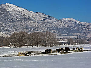 Красиво, кони на снегу на фоне гор... Но кони еще ладно. Когда я увидал чуть дальше коров, мое представление о животноводстве сильно пошатнулось