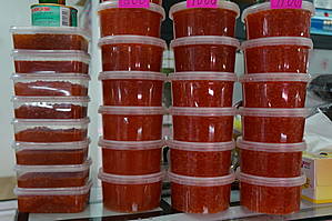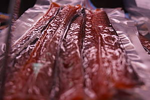 • Свежая рыба .Сейчас на Сахалине идет зимняя путина  на навагу. Корюшку ловят только рыбаки- любители. По количеству продаваемой корюшки можно определить  сколько этих любителей.