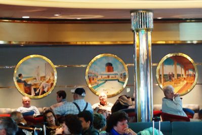 Мне кажется, я вам не хвасталась, что при заселении (а, может, и при бронировании) нам достался бонус: 200 $ на депозитный счет каюты. Такой приятный пустячок. Поскольку в этот раз мы особо себя не ограничивали: винца за ужином на всю компанию в честь дня рождения, тортики, фотки местного производства и т.д., то вдруг перебрали и должны остались? Нехорошо, надо рассчитаться. А мальчик нам и говорит: у вас еще 100 $ с копейками за нами числится. Только отдать я их вам не могу, поскольку не вы клали, а от компании вам такой бонус достался. Не успели проесть-пропить – все пропало. Так что можете или в магазин наш за нужными товарами рвануть, или забыть про эти денежки, словно и не бывало. Ну и ладно, подумали мы. В магазине вашем ничего нам не надо, багаж под завязку норвежской селедкой набит. Наверное, подумали вслух. А мальчик (западной Украины хлопец, кстати, был. И своего русскоязычия упорно не выдавал, хотя то один, то другой человек из нашей компании к его услугам периодически прибегал за время круиза) вдруг к нам проникся. Протягивает распечатку баланса счета каюты, и говорит: — Зайдите в казино, там своя касса. Отдайте эту бумагу, могут поменять на деньги.