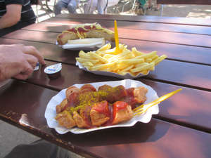 Мы с мужем, сами того не подозревая, отведали эту знаменитую сосиску в уличном кафе на площади рядом с Бранденбургскими воротами на Pariser Platz.