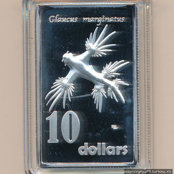 Острова известны популяциями эндемиков — снэрского хохлатого пингвина.Не случайно поэтому на реверсе изображен снэрский хохлатый пингвин. Надписи: название животного — Eudyptes robustus и номинал — 10 DOLLARS.