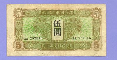 Для оплаты закупок продовольствия и других товаров и услуг, необходимых для обеспечения советских воинских частей, советским военным командованием был начат выпуск военных денег. Были выпущены купюры четырёх номиналов, печатавшиеся в СССР. На банкнотах с цветным орнаментом — надписи иероглифами. Назывались деньги "Юань Красной Армии" ( 紅軍圓).